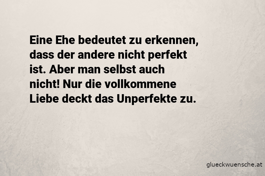 Eine Ehe bedeutet zu erkennen, dass der andere nicht perfekt ist. Aber man selbst auch nicht! Nur die vollkommene Liebe deckt das Unperfekte zu.